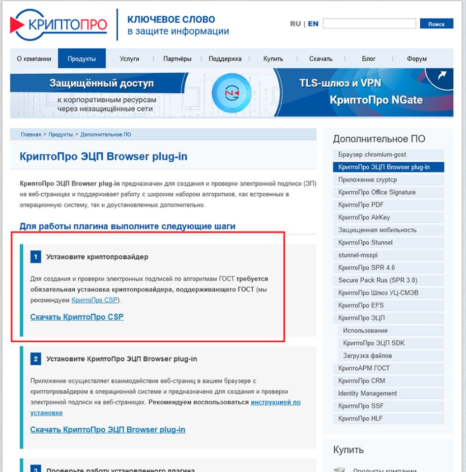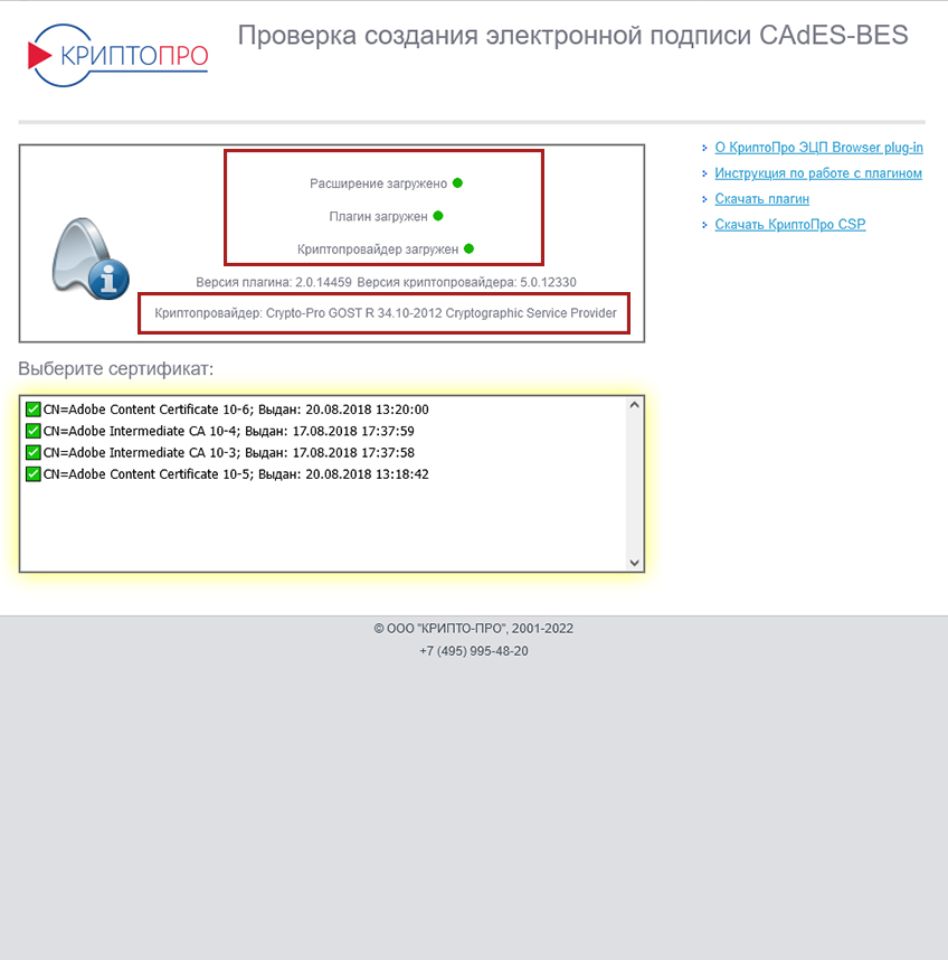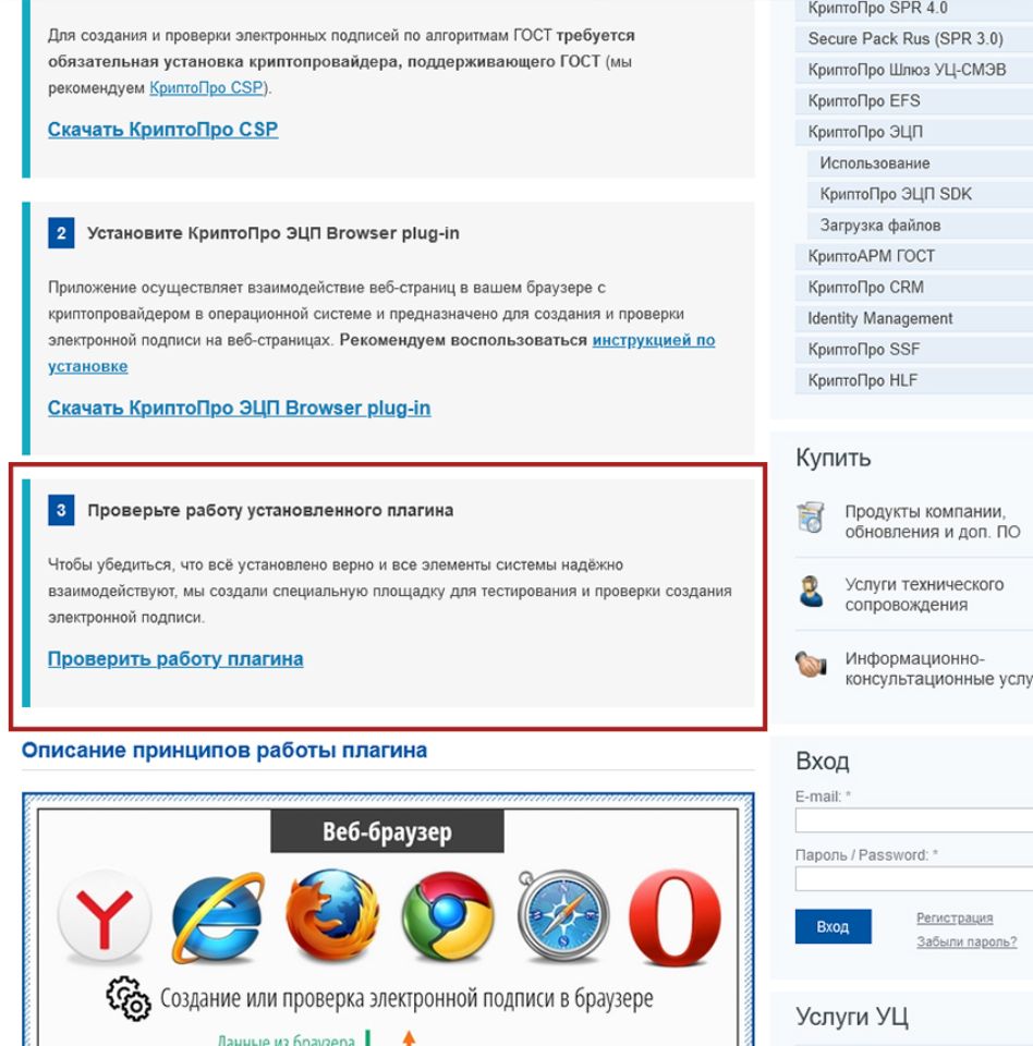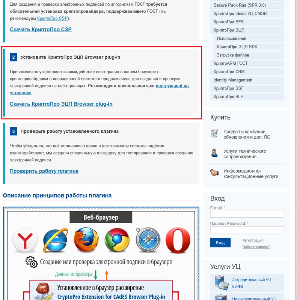 Установлен и активирован браузер плагин КриптоПро ЭЦП Browser plug-in
